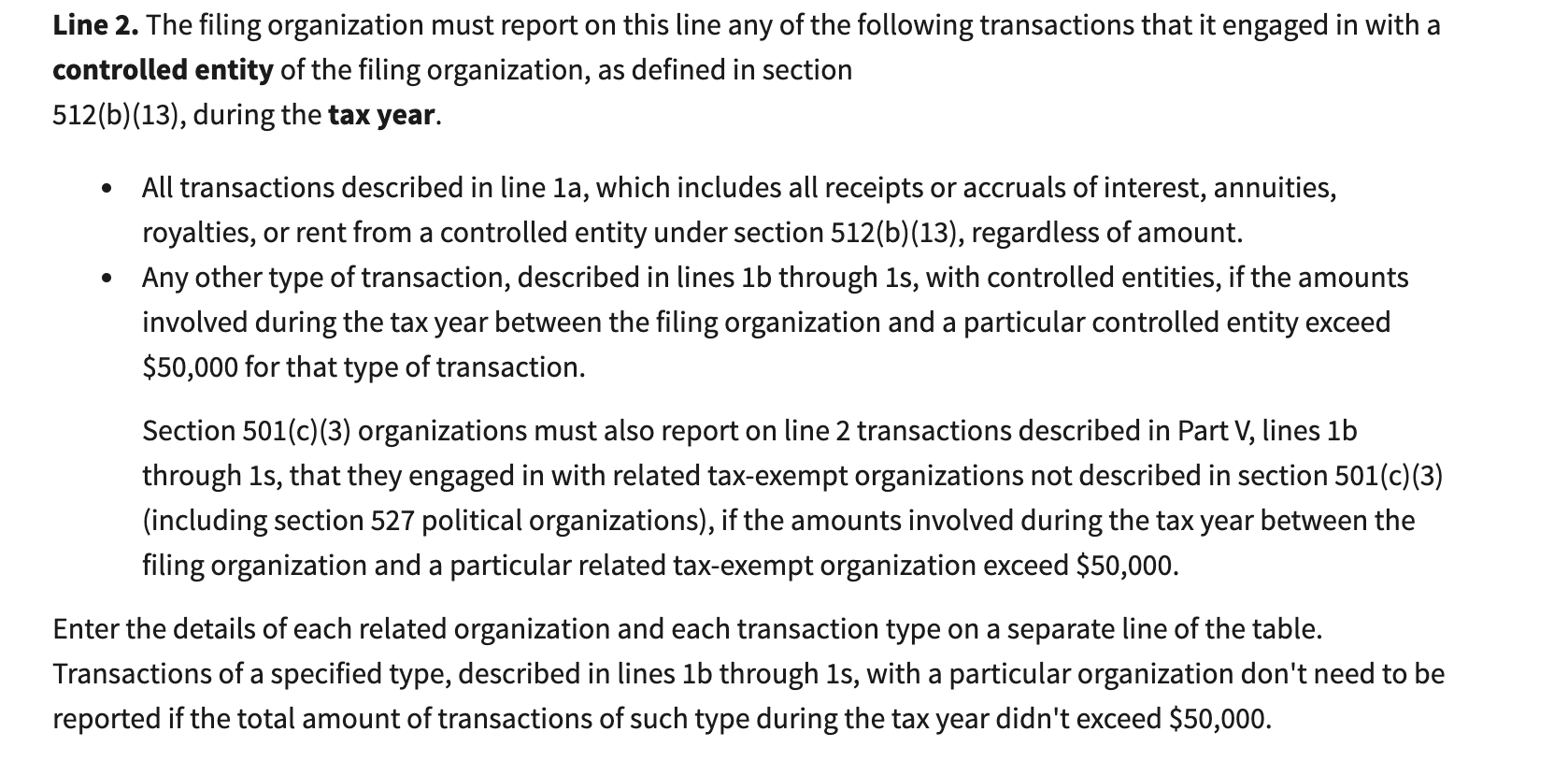 Question: I am working in Schedule R, Part V and cannot get the table for Line 2 to open up.