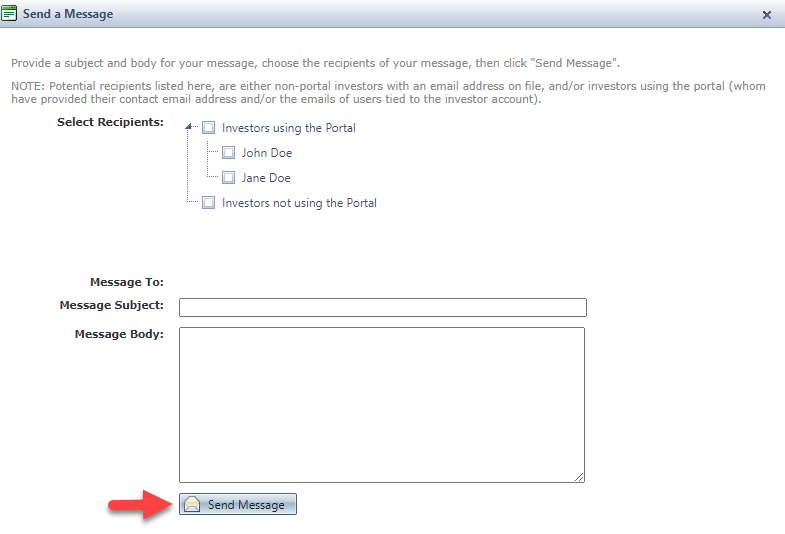 - Click on the "Send a message to your investors" button.