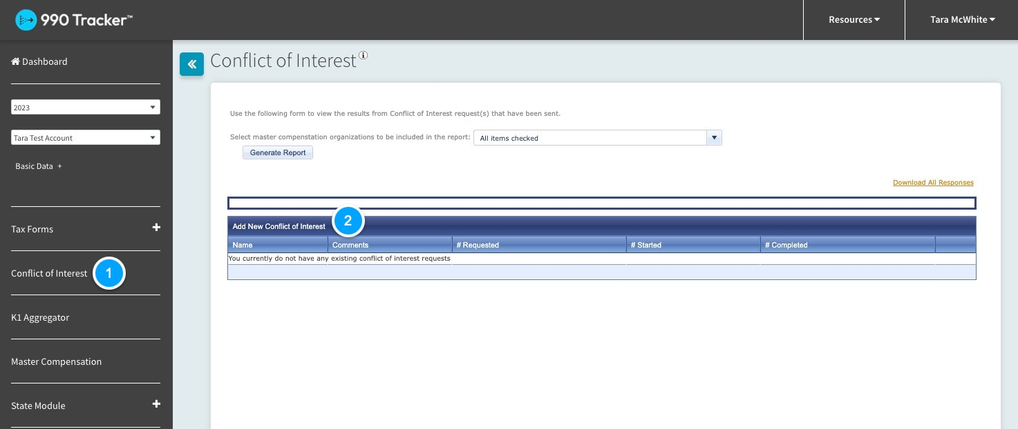 - Click the 'Add New Conflict of Interest' button