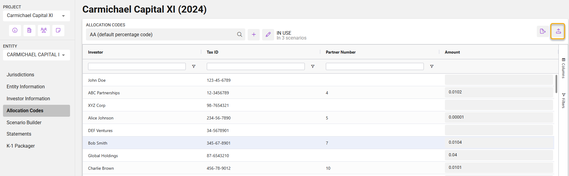 Set Up Allocation Codes Before entering any tax data, users should navigate to the Allocation Codes page to define how amounts will be split among investors.