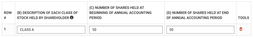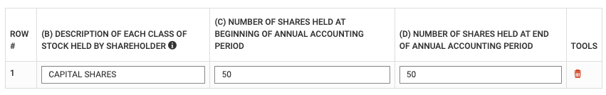 You must enter values in columns C and D on Schedule B - Shareholders of Foreign Corporation