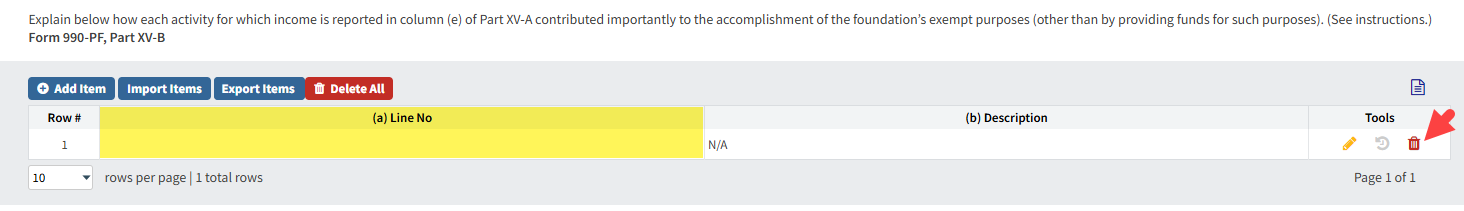 Error Issue The '(a) Line No' column is required for all rows in the Part XV-B table.