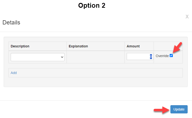 3. Fill in the "Override" checkbox