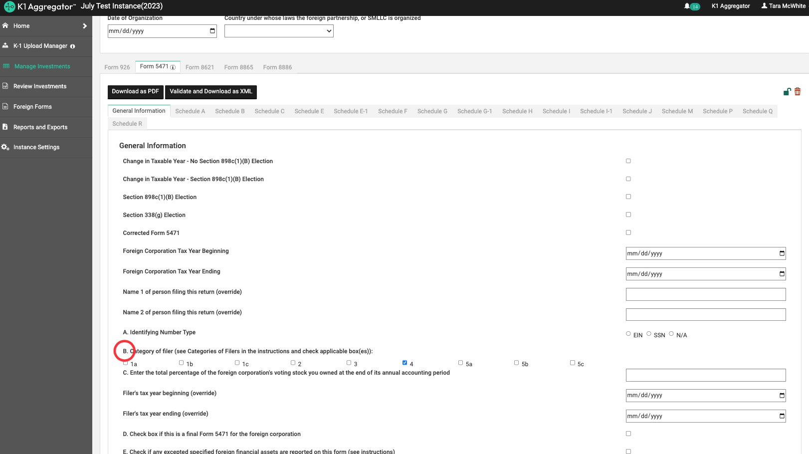 K1 Aggregator support Foreign Form 5471, and can be produced by opening your investment and clicking on the 'Foreign Forms' tab.