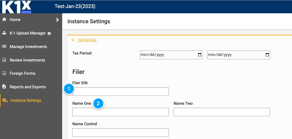 - Enter the Filer EIN and Name
