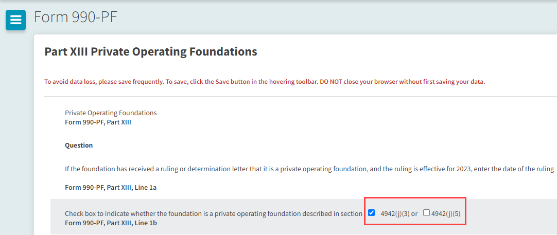 - When it is indicated that the foundation is a private operating foundation in for Form 990-PF, Part XIII, Line 1b, (when either checkbox are filled)