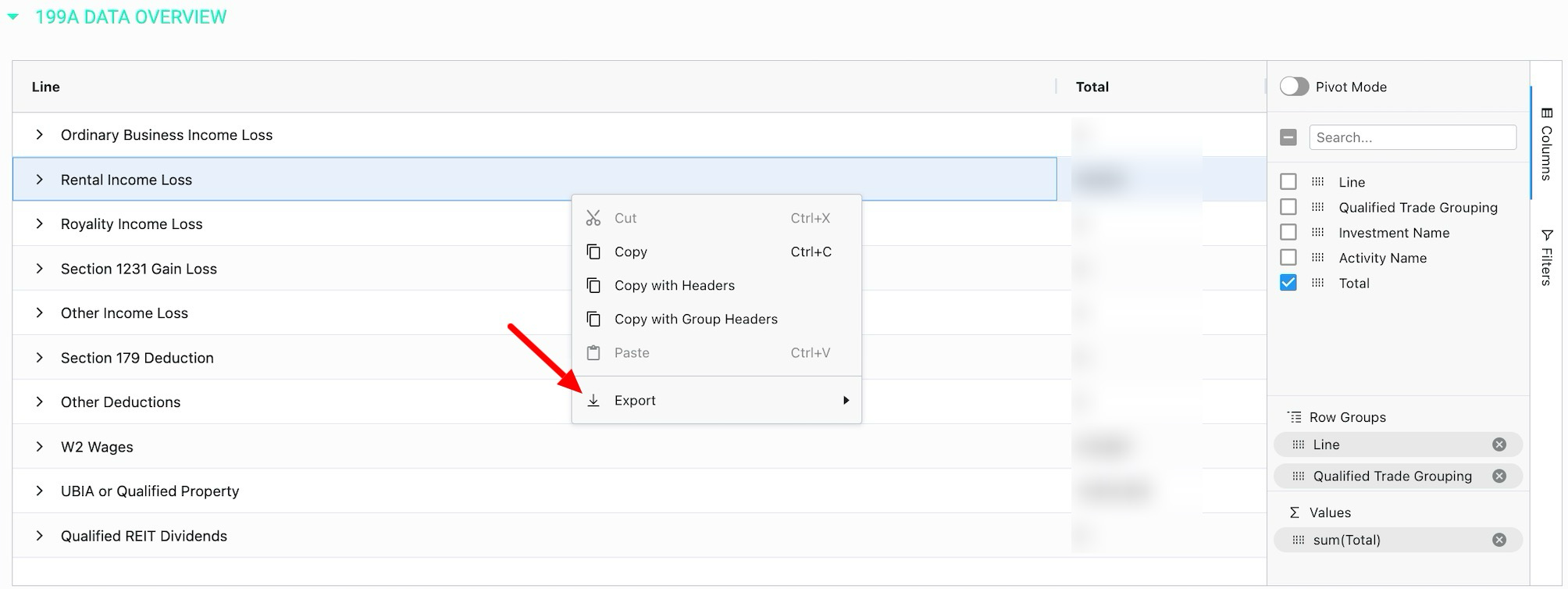How to export 199A (QBI) data from K1 Aggregator for reporting and tax preparation