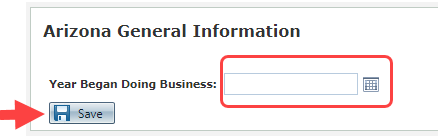 Resolution: The client needs to input the date in the Arizona's General Information section.
