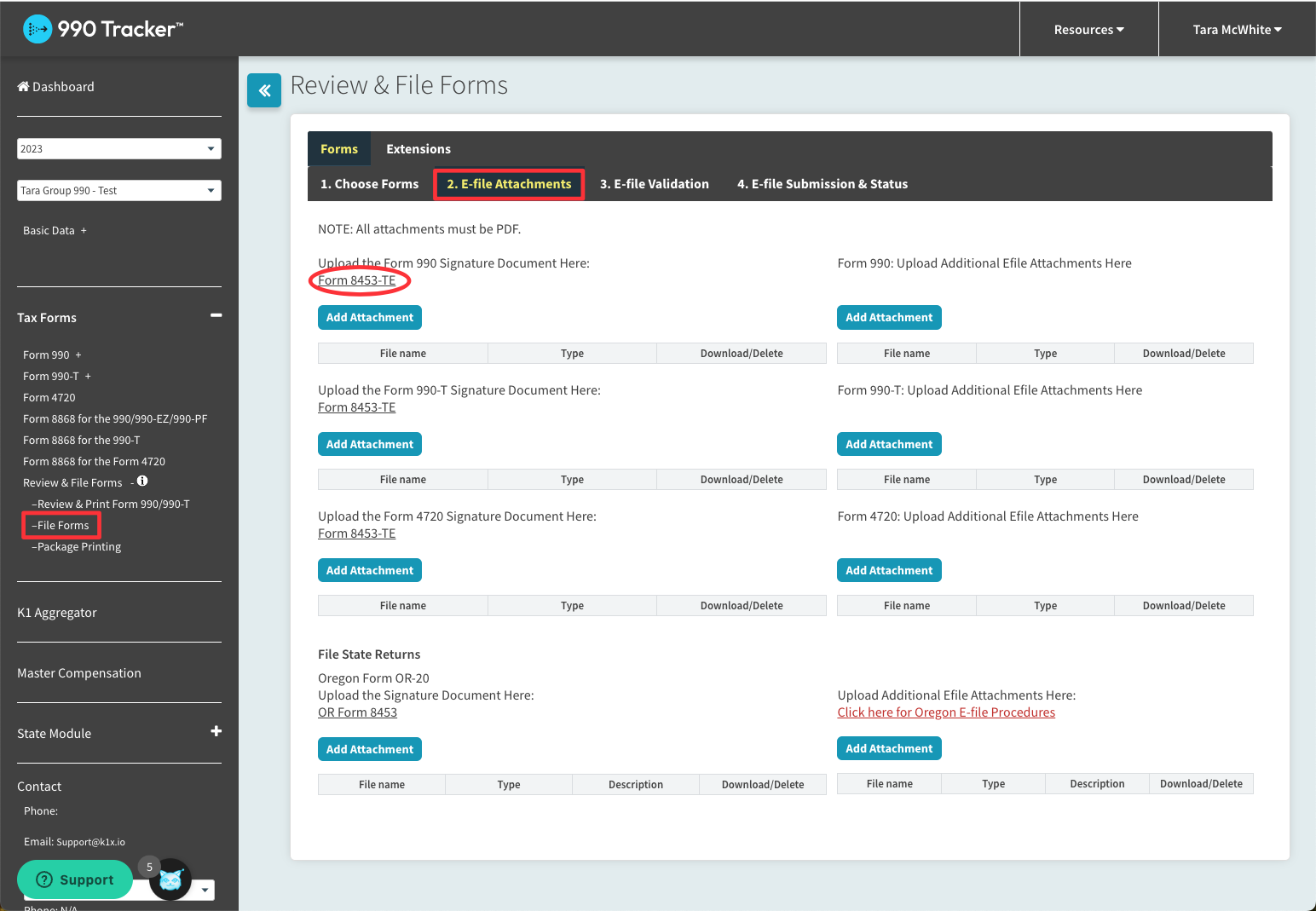 - On the 'Forms' tab, click Step 2 | E-file Attachments