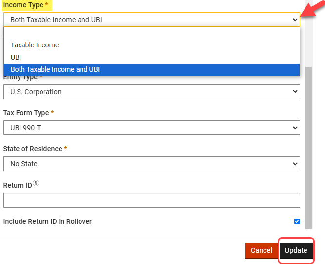 Note: If the Update button is greyed then a required field has not been filled out. For example "State of Residence".