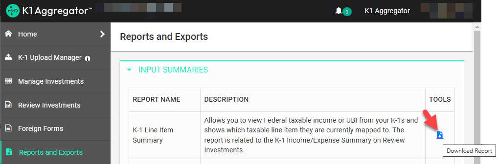 - Navigate to Reports and Exports -> Input Summaries -> K-1 Line Item Summary