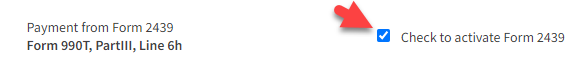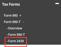 - Form 2439 is now active under Tax Forms -> Form 990-T.