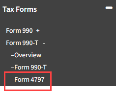 4. Form 4797 is now active under Tax Forms -> Form 990-T.