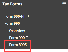 - Form 8995 is now active under Tax Forms -> Form 990-T.
