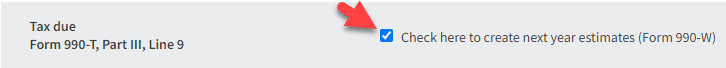 - Check the box to activate Form 990-W.