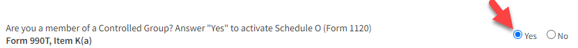 - Answer "Yes" to the Controlled Group question.