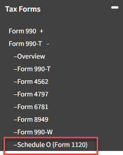 - Schedule O (Form 1120) will now be available.