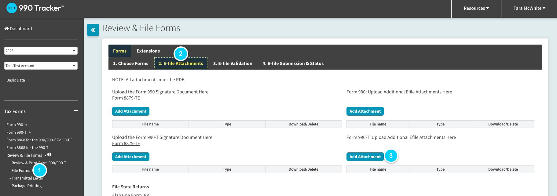 - Select "2. E-file Attachments"