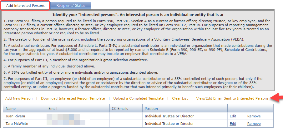 Issue: The client needs to edit the initial Conflict of Interest email sent to the Interested Persons.