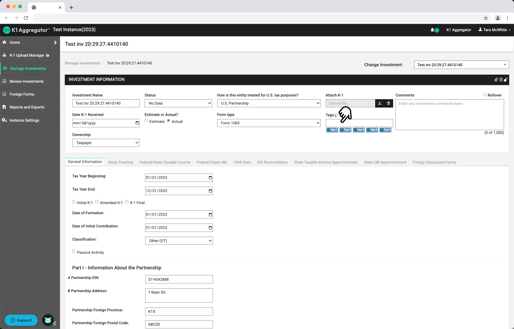 Overview Tags can be used to segment investments in K1 Aggregator.