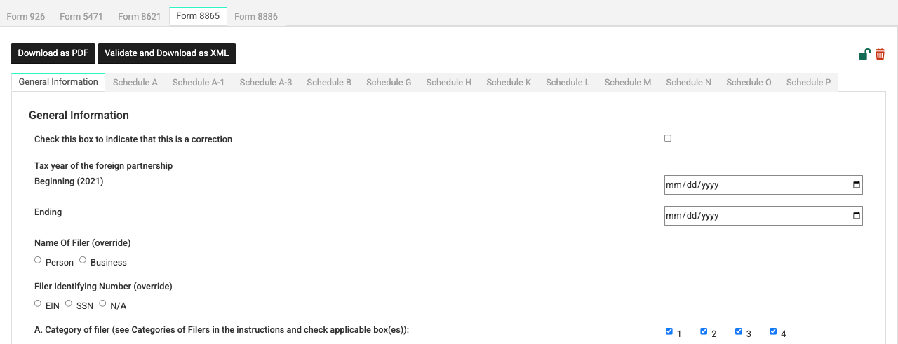 - Select the 'Form 8865' tab