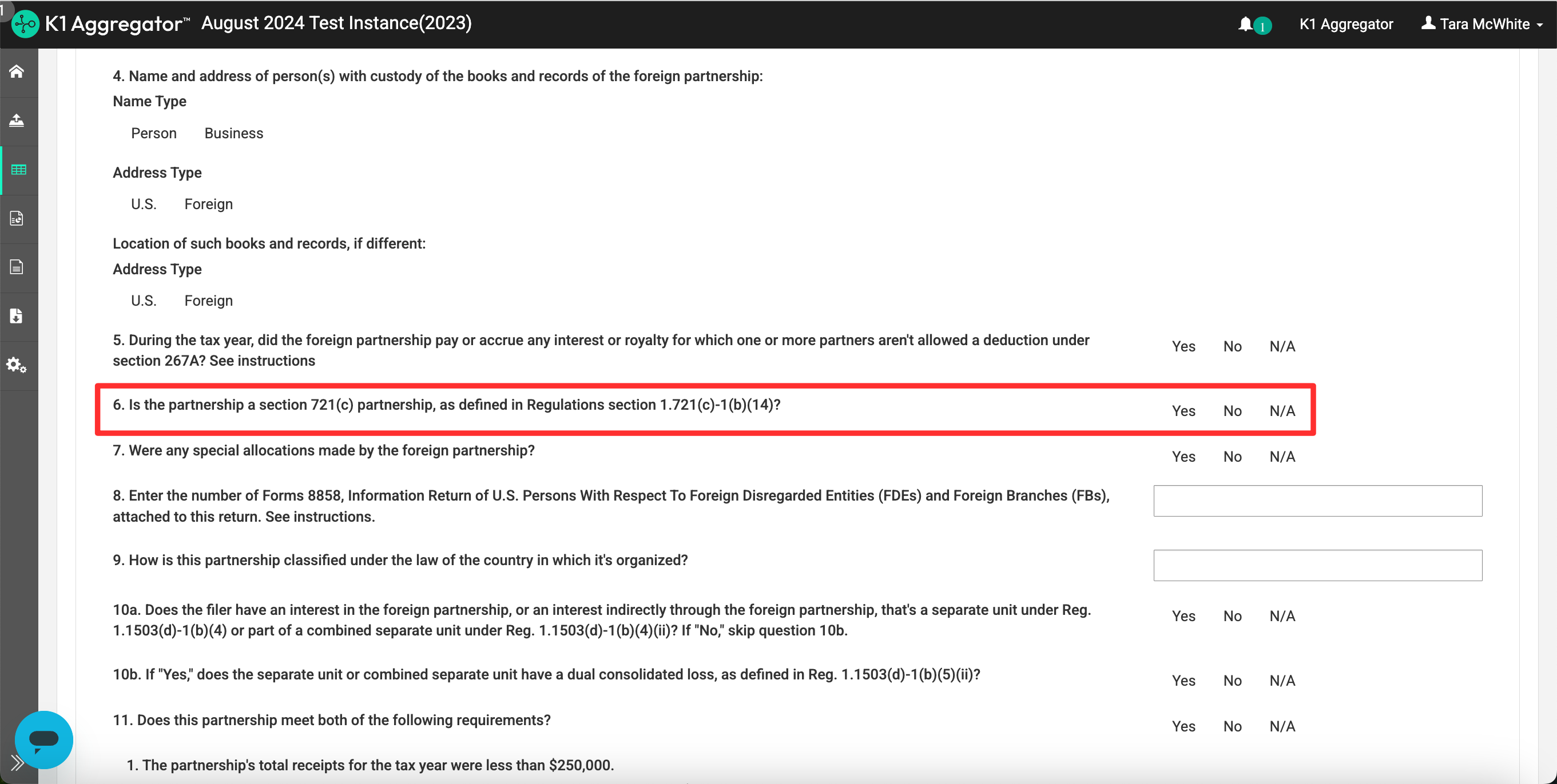 - Complete the 'Form 8865' section based on your partnership scenario