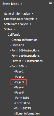 - Navigate to State Module -> States -> California -> Form 109 -> Page 3