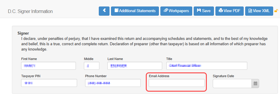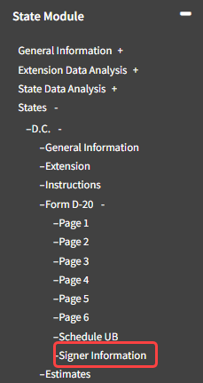 - Navigate to State Module -> States -> D.C. -> Signer Information