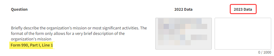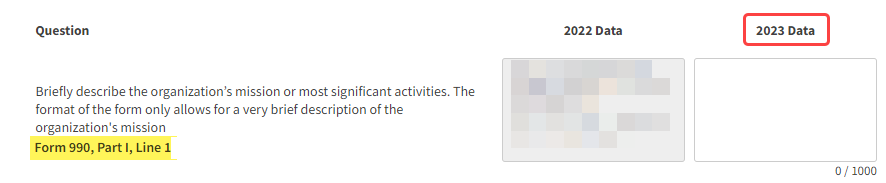 Core Form, Part I, Line 1 -> No data in the Current Year text field