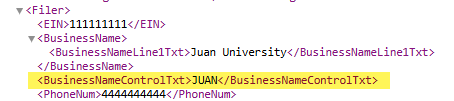How to Resolve IRS Rejection, Database Validation Error: BusinessNameControlTxt