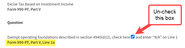 - Uncheck the box in Form 990-PF, Part V, Line 1a