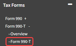 - Navigate to Tax Forms -> Form 990-T -> Form 990-T, Schedule A, Part II, Line 18