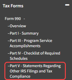 - Navigate to Tax Forms -> Form 990 -> Part V -> Line 14b