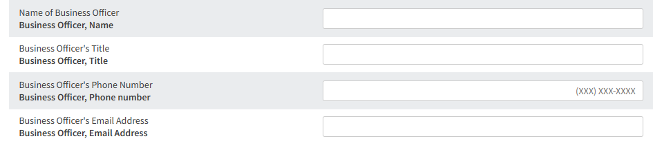 Note: It is best practice to fill out all of the Business Officer fields to avoid possible IRS rejection related to that section.