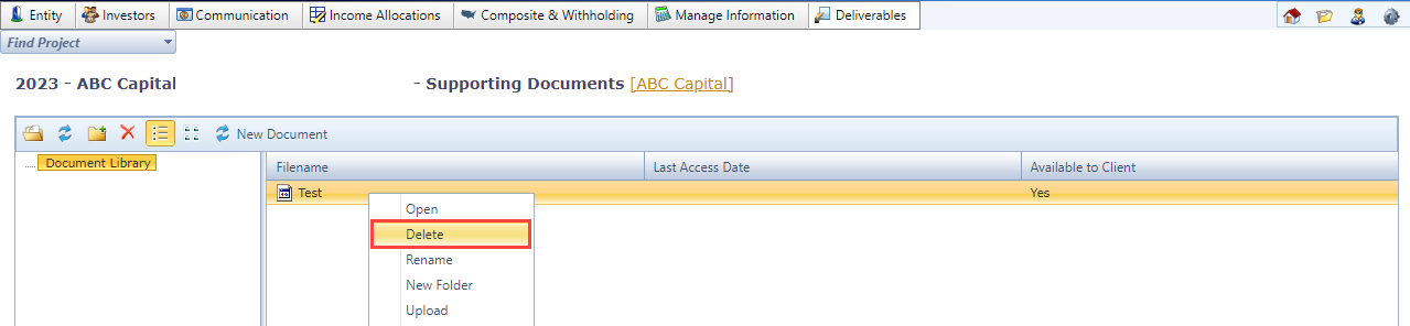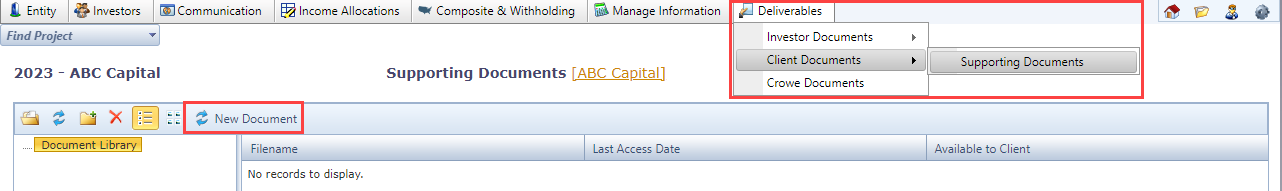 - Under the âDeliverablesâ drop-down box, select âClient Documentsâ, then âSupporting Documents.â