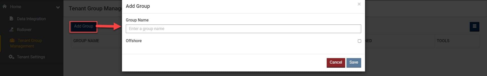 The Add Group button will allow administrators to manually create a group with an entered group name and can indicate if the group is an offshore group. Whether or not a user is allowed access to an instance will depend on a number of factors, explained here.