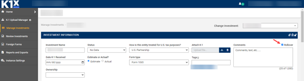 Why it matters: Investment comments are optional and will only carry forward if they exist in the prior-year Instance.