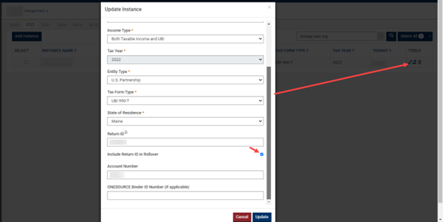 Why it matters: If your team uses Return IDs for organization or downstream workflows, confirm it is set in the prior-year Instance before rollover.