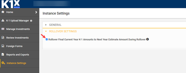 Why it matters: This controls whether prior-year Federal K-1 totals populate as a new-year estimate in the next tax-year Instance.