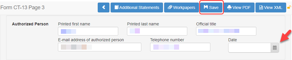 - Navigate to State Module -> States -> New York -> Form CT-13 -> Page 3