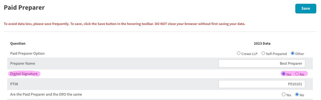 - Open Paid Preparer page
