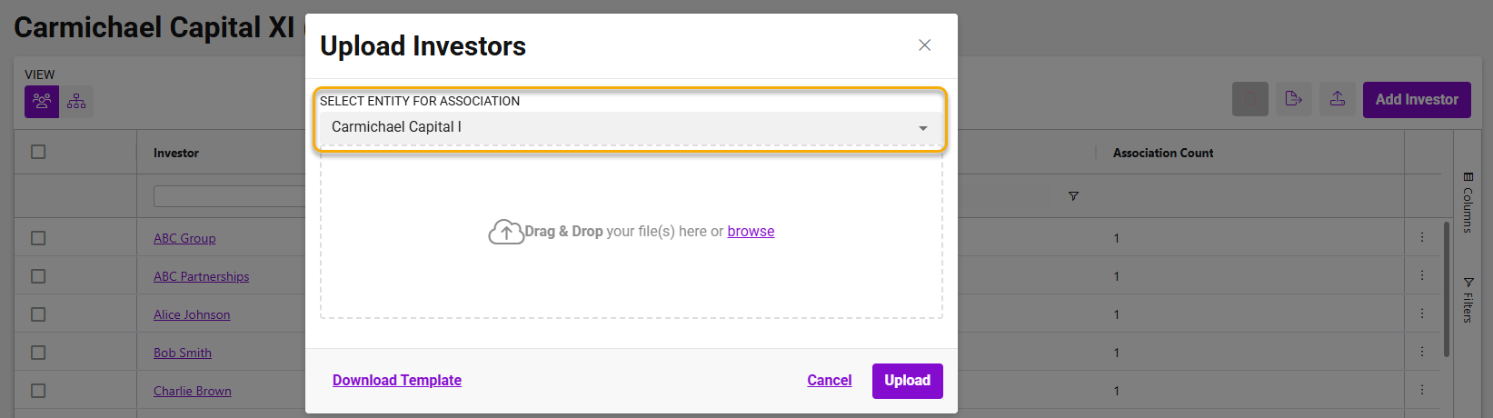Upload each entityâs investors using the import template. The system will:-