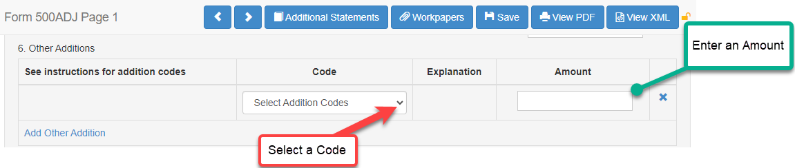 - Scroll down to Section A - Additions to Federal Taxable Income, Line 6