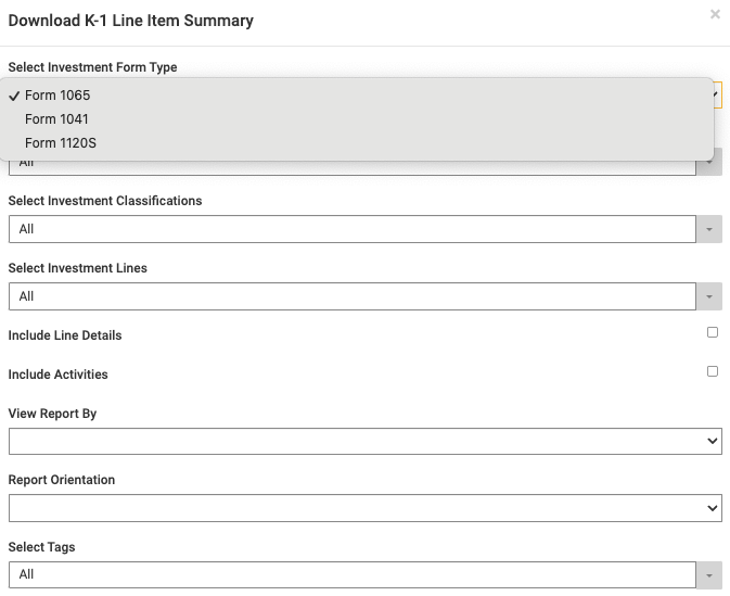 Issue: The exported K-1 Line Item Summary report is missing investments, I cannot find them listed in the report.